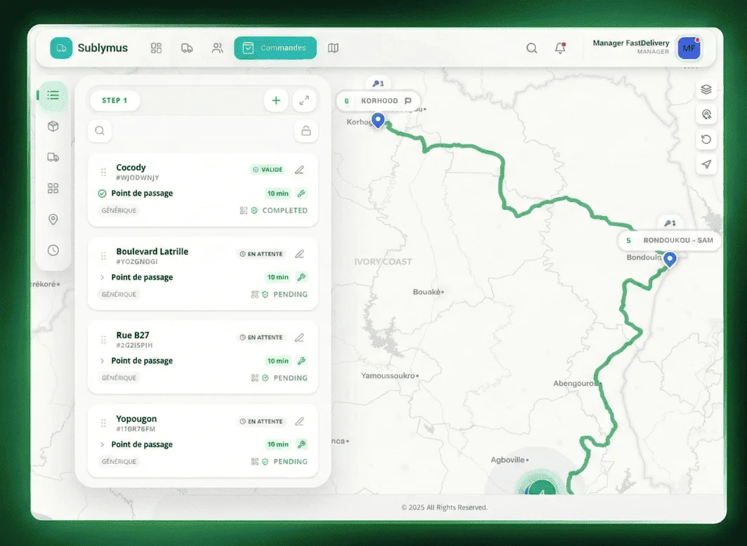 - ✓Suivi du livreur sur une carte live.